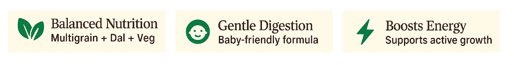 Wholesome Nutrition: A blend of multigrain, dal, and veggies to ensure a balanced diet for babies aged 6+ months.