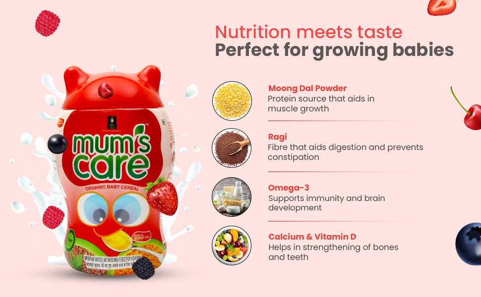 Give your baby the power of traditional nutrition combined with modern science through British Life Sciences Mum's Care Cereal - Ragi & Moongdhal, Rice & Moongdhal. These carefully crafted cereals are designed to meet your child’s growing needs, supporting healthy development at every stage.