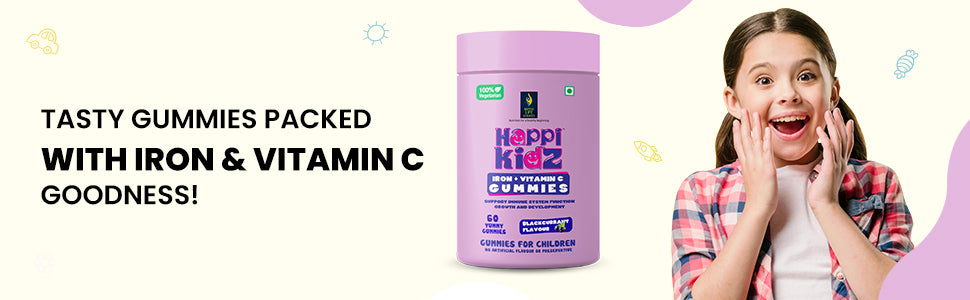 With Happi Kidz Iron + Vitamin C Help your child meet the daily required intake of Iron & Vitamin C. Happi Kidz Iron + Vitamin C gummy bears are nutritional insurance against missing nutrients in your child's life. Our gummies are manufactured in WHO: GMP & ISO 22000:2005 Certified facility to meet the highest standards for safety."