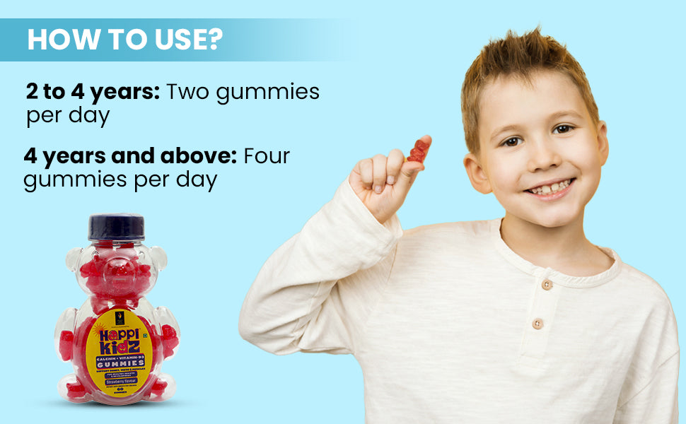 Easy Daily Dosage: This product is designed for children aged 2 to 4 (2 gummies per day) and 4 years and above (4 gummies per day), with 60 gummies per bottle to keep them healthy and happy.