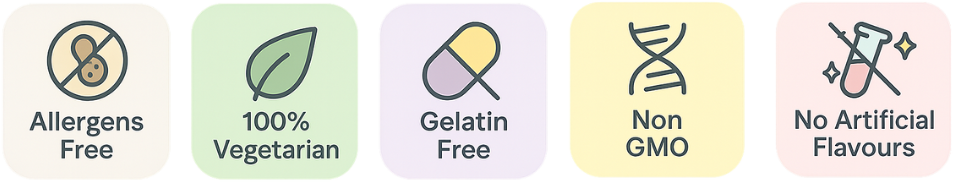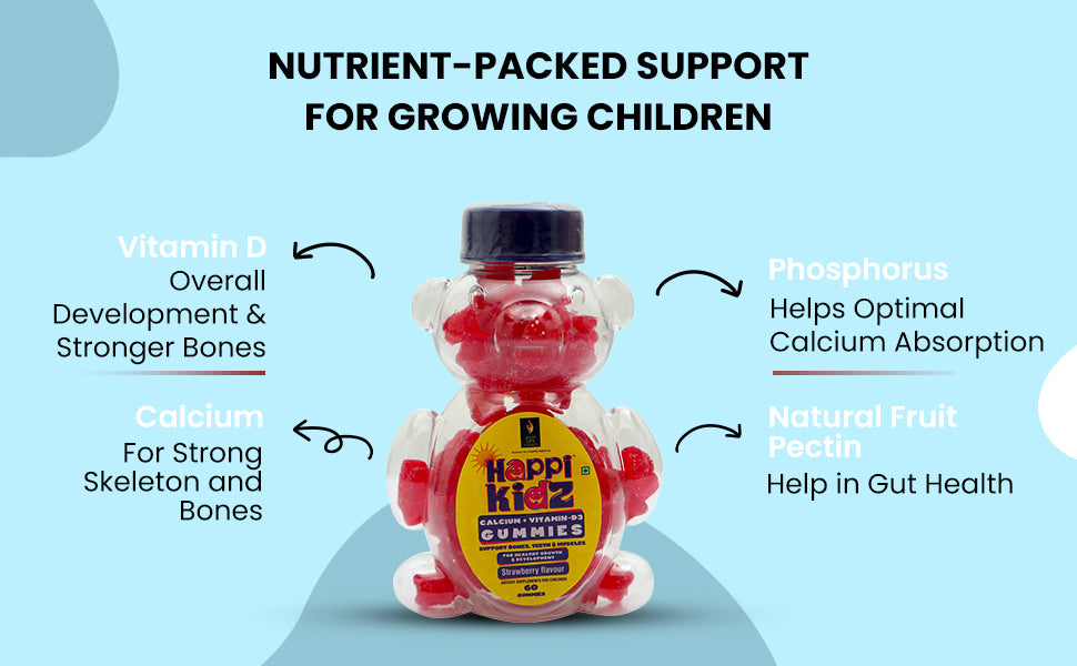No Harmful Chemicals: These gummies are 100% vegetarian, gelatin-free, non-GMO, and free from allergens, artificial flavours, and colours, providing a safe and healthy option for your child. Made of fruit pectin base